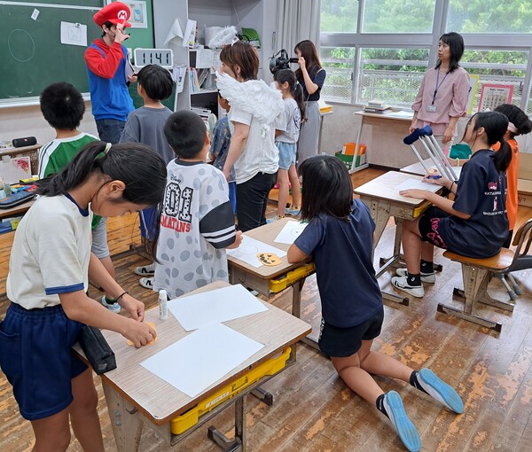 10月22日(水)、お隣の城辺小全児童と本校の全児童で特別授業(合同英語)を実施しました。