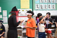 授業名を「ALTと楽しむハロウィンパーティー!~英語と異文化を体験しよう~」と銘打って、英語専科の先生やALTの先生方を中心に授業を準備していただき、ハロウィンに因んだお話を聞いたり、ゲームをしたりして楽しみました。