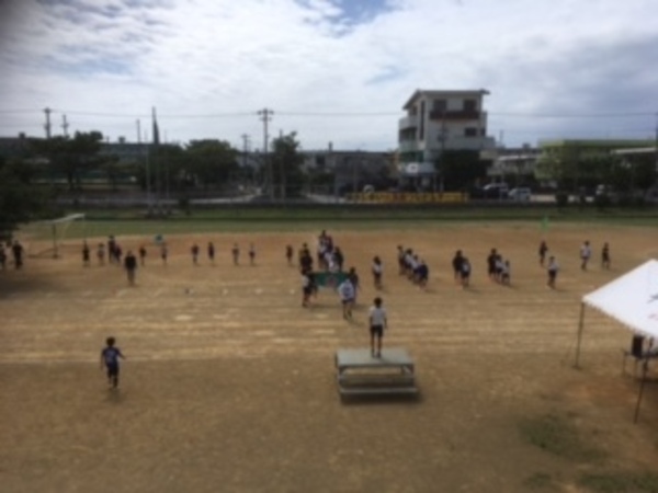 全体行進の練習風景といっても、各クラスの列の先頭児童と児童会役員だけでの練習です。