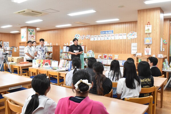 たくさんの本を贈呈され