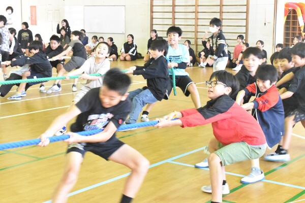 6年生と5色つなひきの