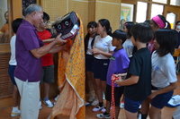 9月24日の5校時に、久貝自治会長の砂川さん、松原自治会長の松原さんと奥様の朋子さん、そして久松公民館館長の与那覇さんをお招きして、久松地区に伝わる「シーサーガウガウ」の歴史について学びました。