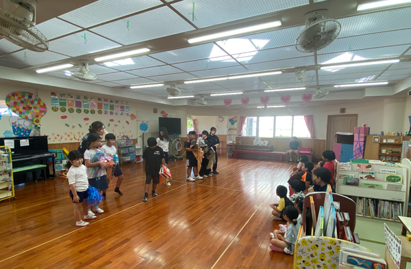 10月6日の朝8時45分から、幼稚園でスキル教室の児童による交流会が行われました。