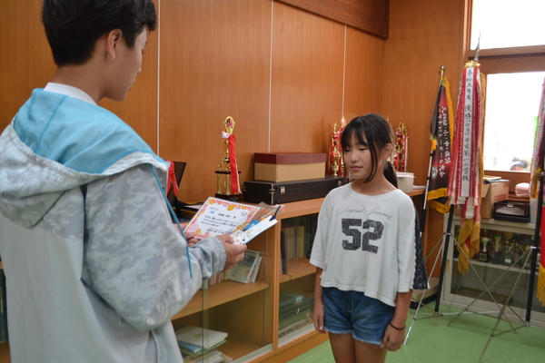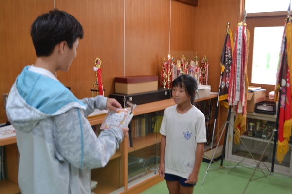 図書委員長の伊東さんから賞状と賞品を受け取った児童の皆さんは、皆、とても嬉しそうでした。