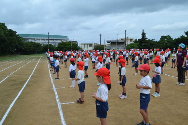 27日は、全体練習の1回目でした。悪天候のため、今回が初めての全体練習となりました。児童は、練習開始の2~3分前には入場前の位置にしっかりと並び、やる気が伝わってきました。