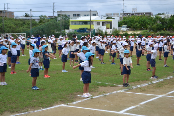 練習内容は、開会式や準備体操、返礼の仕方、運動会の歌の声出しや手の動きの確認など、多岐にわたりました。子どもたちは、永松先生の話をよく聞き、自分の行進や退場の際の体の向きの変え方などを丁寧に練習していました。
