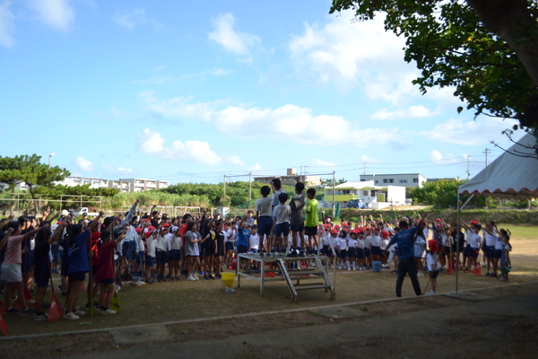 最後には、児童会の呼びかけで全員が「運動会を成功させるぞ!」という掛け声をあげ、続けて「がんばるぞー!」「オー!」と元気いっぱいに声をそろえました。子どもたちの表情からは、本番への意欲と団結の気持ち、が強く感じられました。