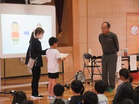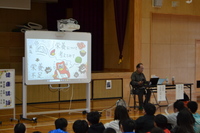 まず低学年では、子どもたちが大好きな「うんち」をテーマに、うんちの状態から自分の健康を知ることができるというお話をしてくださいました。形や色などの違いが生まれる理由もわかりやすく説明していただき、日頃どんなことに気を付ければよいのか、健康への視点を子どもたちに示してくださいました。