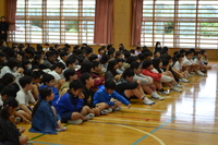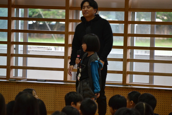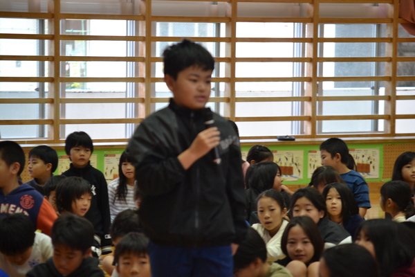 12月4日の朝会では、「おもいやり算と人権」をテーマに講話を行いました。現在、本校では人権旬間であり、これに合わせて、子どもたちに思いやりの気持ちを具体的な態度で表すことの大切さを伝えました。