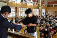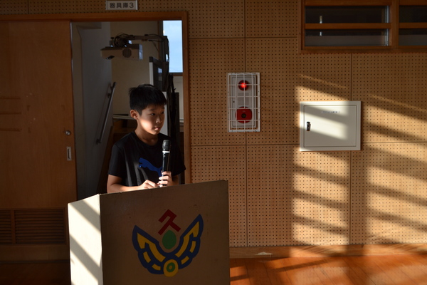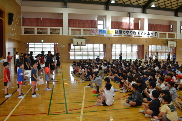 昨日の「持久走記録会」で入賞した、各学年3位までの児童の表彰を朝会で行いました。朝会は体育委員会の児童が司会を務め、落ち着いた進行で会を進めてくれました。
