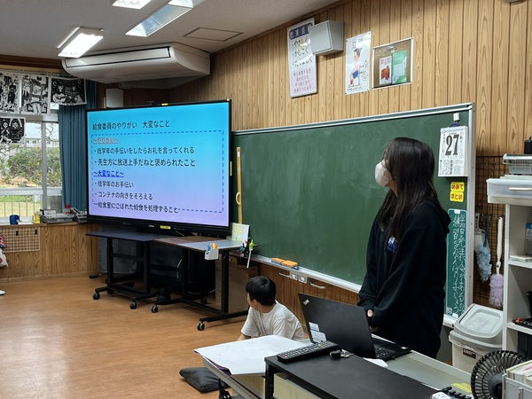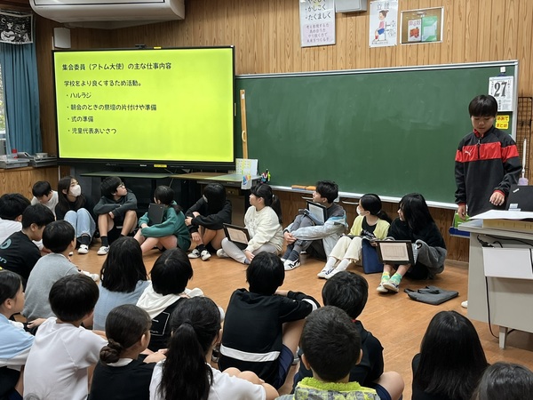 1月27日、卒業を控えた6年生が、これまでの経験をもとに「委員会活動とは何か」「どのような委員会活動があるのか」について、5年生に向けて伝える活動を行いました。