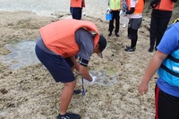 4月28日(月)にイラビジ体験学習を行いました。イラビジ体験学習では、池間島の北西にある陸から渡れる岩礁「イラビジ」 で海の生き物や海の環境などを観察、調査しました。シャコ貝やウミヘビ、サンゴなどが観察できました。当日は、漁師や自治会長など地域の方3名がガイドとして、子ども達の学習をサポートしてくれました。今回もサポートしてくれた地域の方々「すでぃがふー」