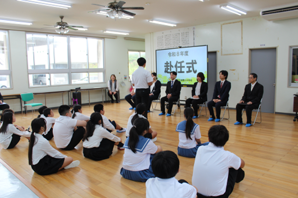 赴任式では、 今年度、新たに池間小中学校に加わった先生方をお迎えし、児童生徒代表による「歓迎の言葉」が送られました。