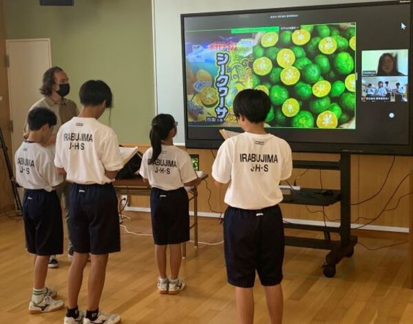 ボストンと宮古島をオンラインでつないで、7年生と8年生が英語でいろいろな質問をしました。本校の生徒もクリスティン先生も互いを懐かしみながら英会話を楽しんでました。