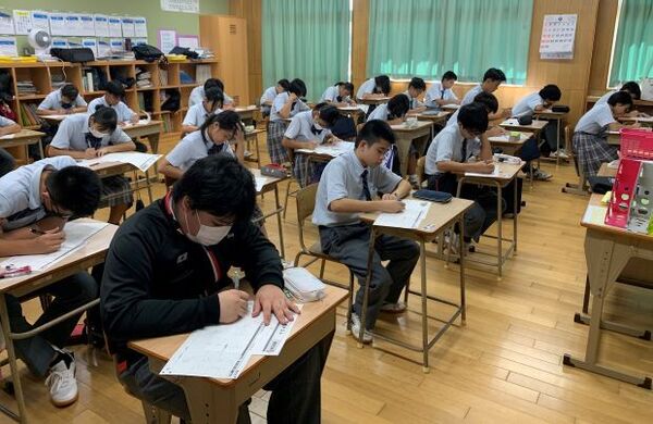 本日(9/2)、中学部では実力テストが行われています。 教科は国語・理科・英語・社会・数学の5教科です。 テストの内容は1学期の学習の定着と、夏休みの取り組み状況の確認です。 中学部の生徒はみんな一生懸命にテストに取り組んでいました。特に、9年生は本格的な受験シーズンを迎え真剣な表情で臨んでいましたよ。 頑張れ中学生! 頑張れ受験生!! 教育目標「ふるさとに誇りを持ち 世界へはばたく いらぶの子」の実現に向けて、ワイドー結の橋!!