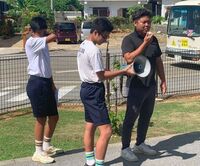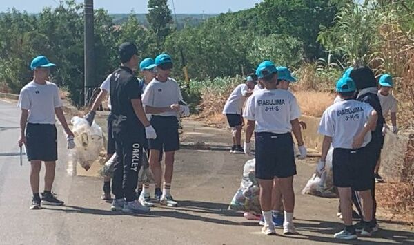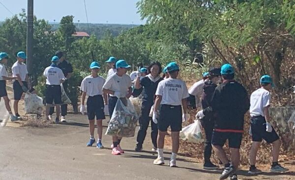中学部の生徒たちは暑い日差しの中、汗だくになりながらもサシバ保護に向けて、地域の環境保全に取り組んでいました。