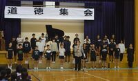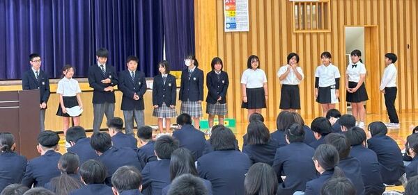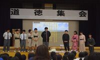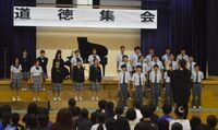 6年生・9年生の合唱と7年生の方言劇の内容で構成された道徳集会では、1~9年生までの全児童生徒で心の成長を実感することができました。