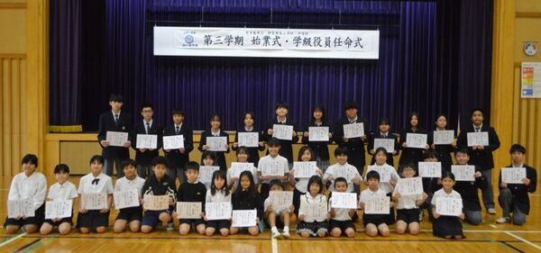 始業式のあとには第3学期の学級役員任命式も行われ、各学級の3学期役員に辞令が交付されました。