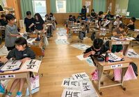 今日(1/8)、本校の小学部では、「校内書き初め会」が行われました。