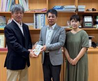 「伊良部島の子どもたちのために、本校における教育活動の充実にかかる費用にして下さい。」とのあいさつもいただき、先輩方の心意気を感じました。昭和41年生まれの先輩方のあたたかい気持ちが伝わる寄付でした。本当にありがとうございます。