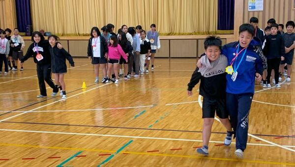 手作りメダルのプレゼントやダンス、二人三脚や五色綱引きなどそれぞれの学年のアイディアで6年生と一緒に楽しい一時を過ごしましたよ。(^^)/