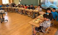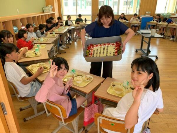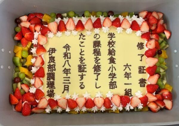 先週卒業した9年生と同じく、伊良部調理場から特別メニューとして卒業証書のケーキがプレゼントされました。6年生は小学部で食べる思い出の給食を楽しみ、味わいましたよ。