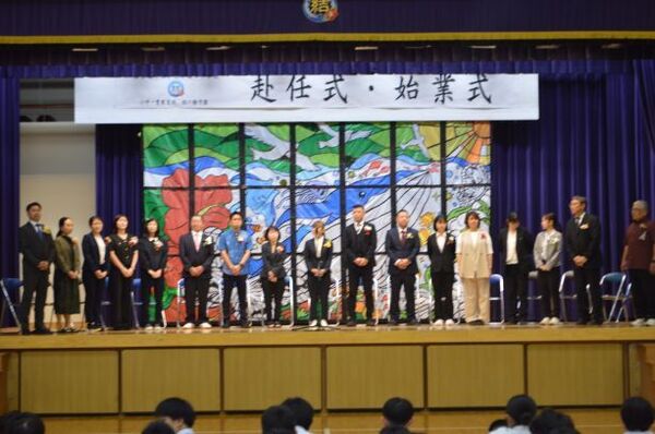 始業式に先立ち、新たに本校に着任した先生方の赴任式がおこなわれました。3月に16名の先生方を送り出しましたが、今年度、新たに18名の先生方が本校に着任しました。