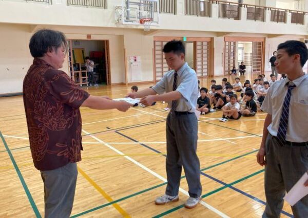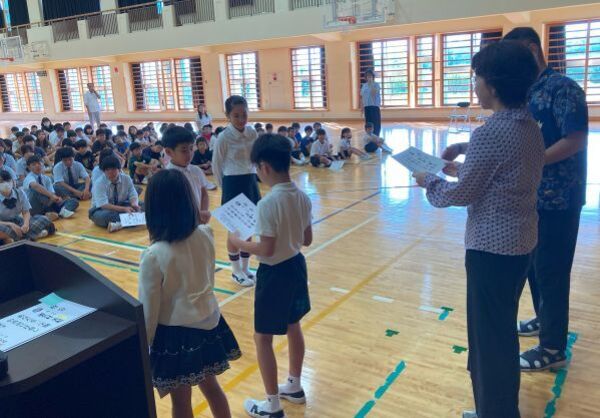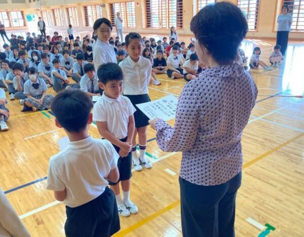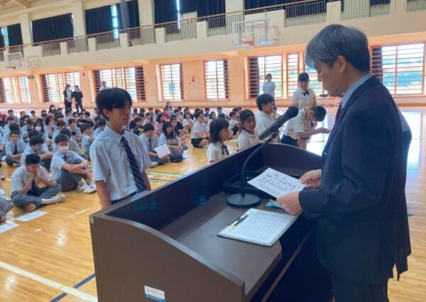 本日、全体朝会にて1学期学級役員任命式がおこなわれまし。