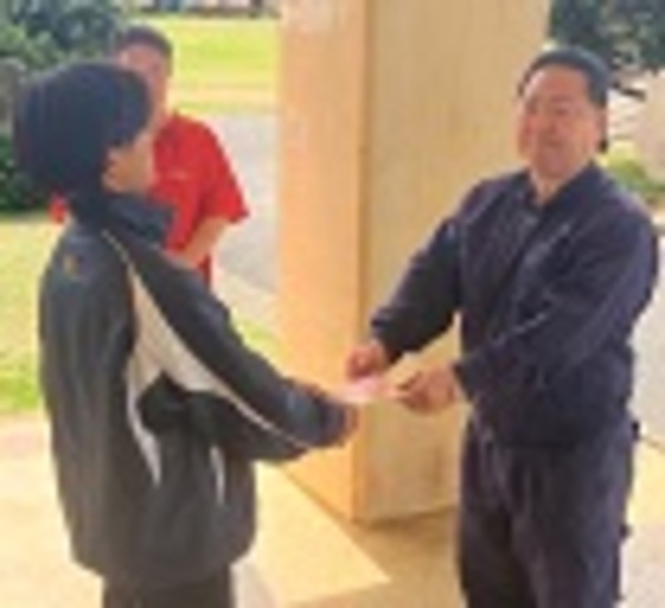 海邦銀行杯沖縄県中学校野球大会に本校の野球部が近隣校と合同チームで宮古代表として出場します。日頃ご支援ご協力いただいている学区体協の会長からこの大会への激励として激励金の贈呈がありました。地域の激励も力にし県大会上位進出を目指します。いつも応援ありがとうございます。
