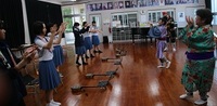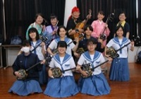 本校には郷土芸能同好会があり、放課後三味線に触れ、演奏したい楽曲を弾けるようになるよう練習を重ねています。学校での集会や激励会などで応援曲として披露したり、地域の敬老会やまつりでゲスト出演しています。この日、「同好会の活動を応援したい!」ということで、東京から宮古島に来島した郷土芸能サークルが学校で演奏してくれました。楽器の紹介や合同演奏などを楽しんだいい活動日となりました。
