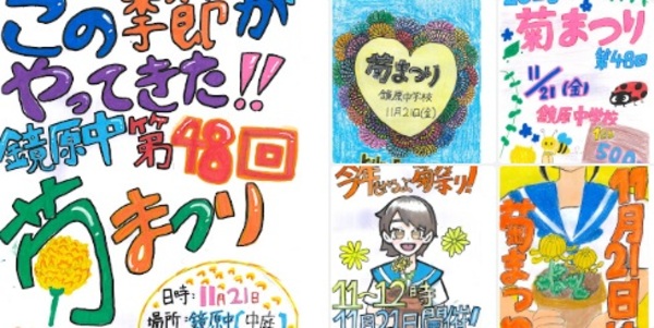 第48回菊まつりに向けいろいろな準備をしています。その一つであるポスター作成。生徒個人個人が菊まつりをテーマにポスター作成しました。地域に宣伝用として掲示してもらう予定です。是非ご覧になって、会場にも足を運んでください。