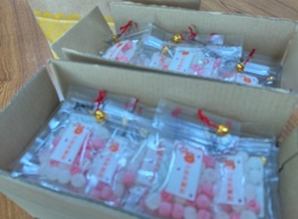 紅白の飴です。脳にも糖が行き届き、いい勉強につながりそうです。