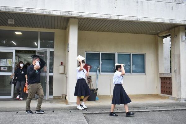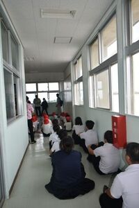 本市の防災の日に合わせて本校と近隣小学校合同で地震・津波避難訓練を実施しました。11:00地震が発生、その後大津波警報発令と仮定し行いました。シェイクアウト、おかしもち(おさない、かけない、しゃべらない、もどらない、ちかよらない)を訓練しました。本校は地区の避難場所に指定されていることもあり災害時には住民、観光客など多くの避難者が駆けつけることが予想されます。その際は是非落ち着いて、行動し1つしかない命を協力し合い守りましょう。