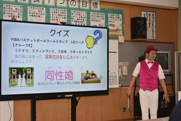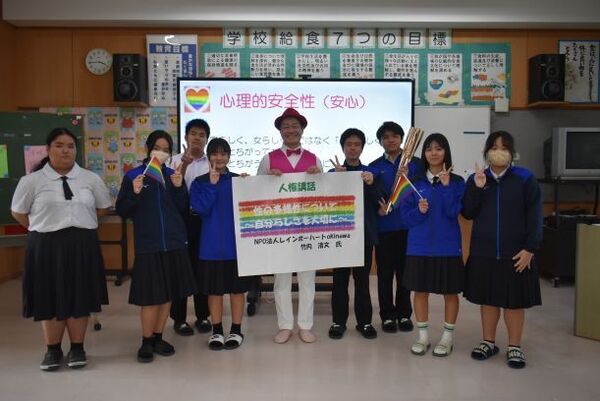 竹内清文さんを招いて思春期講座(人権)を行いました。生の多様性や自分らしさを大切に過ごしていこう等、清文さんの生い立ちを交えながら講話していただきました。自分らしさを大切に、自分と同じくらい人も大切にしていこうと決意しました。キヨちゃん、講話ありがとうございました。また今日から頑張ります。