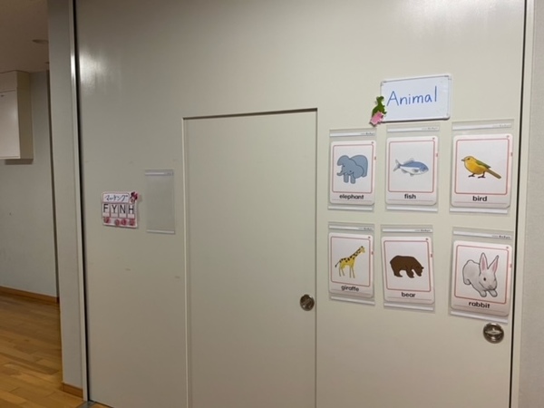 また、2階の廊下にはアルファベットや生き物名前、10月のハローウィンにちなんだ掲示がされています。