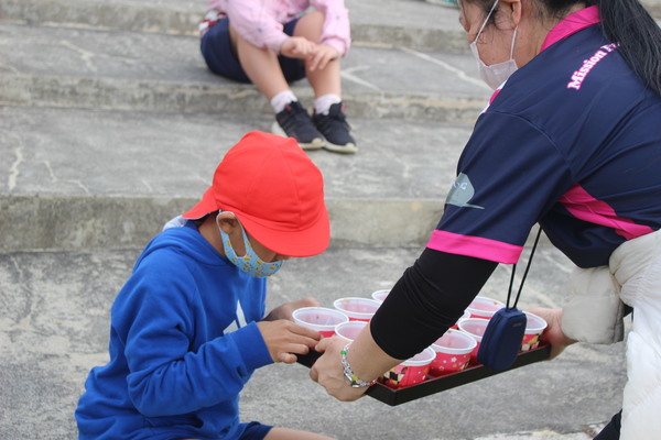 駅伝競走が終わり、外でおいしいぜんざいをみんなでいただきました。
