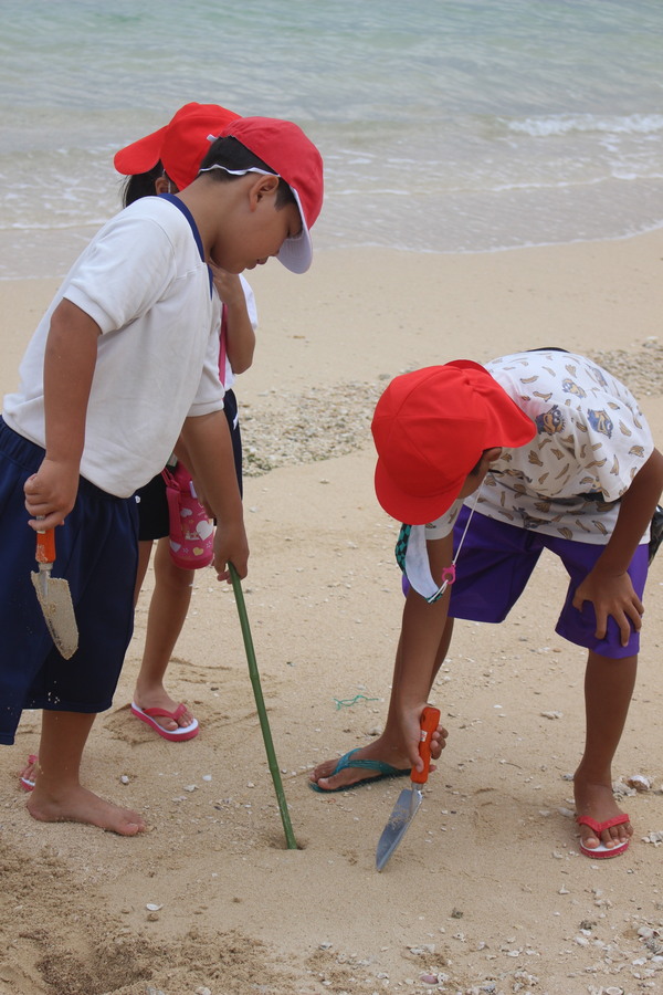 低学年は、西の浜でカニの穴を見つけて、「いないかな~」