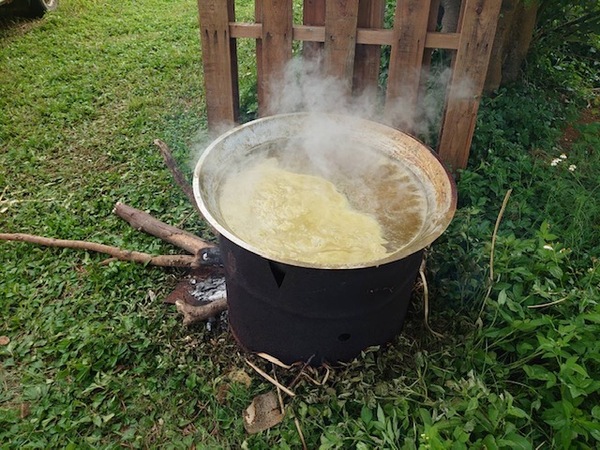 4月18日(月)に地域の方が、ツリーハウスにて黒糖づくりをしてくれました。みんなで黒糖を機械に通し甘い汁をしぼり出しました。出来上がった黒糖は狩俣小学校・幼稚園のぶんも頂きました。地域の方が色々教えてくれるのですごく嬉しいです。黒糖も美味しくいただきます。