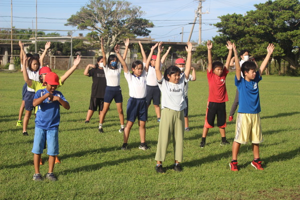 9月14日(水)は、ラジオ体操の朝会を実施しました。台風もさり、気持ちいい空でした。前に佑弥先生からラジオ体操が終わったらしゃべらない で待つとかっこよくきまるよ~と教えてくれました。1回目のラジオ体操ではつい声が出る子もいましたが、2回目はびしっと決まりました。また練習を重ねる度、子ども達の成長が楽しみです。