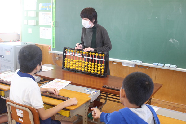 1月 11日(水)3・4年生は、平良さんを招いて、そろばん体験をしました。