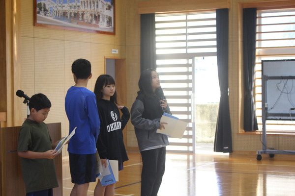 2月1日(木)は校内持久走大会に向けた「宮古島1周チャレンジ」の表彰、給食旬間に行った「ペロリ週間」の表彰を行いました。宮古島1周チャレンジは、運動場を一周するごとにシールを貼り、100周を目指すという取り組みでした。表彰された子どもたちの中には、昼休み等に毎日走り続け、コツコツと頑張った子もいます。目標に向けて頑張れる姿勢がとても素晴らしいと思いました。