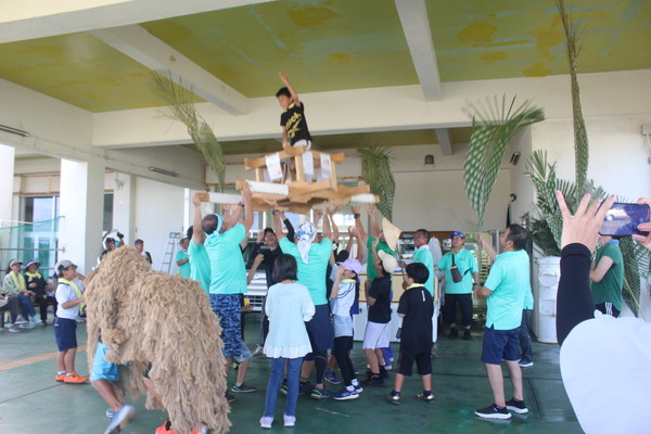 御神輿では、3.4年生が上に乗り、地域を盛り上げていました。