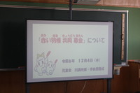 12月4日(水)の朝会で、赤い羽根共同募金に関する児童会の発表が行われました。この活動を通じて、全校児童が募金の意義やその大切さについて改めて考える機会となりました。
