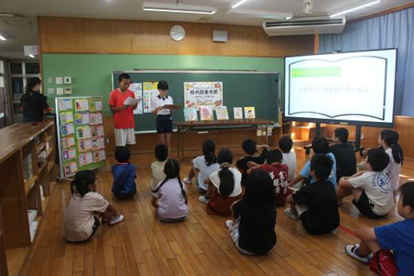 10月は「読書月間」です。朝会では、各学年ごとのおすすめの本とそのあらすじを紹介し、「もっと本を読みたい!」と思ってもらえるような、楽しい朝会になりました。また、読書月間中の図書委員の取り組みも発表しました。