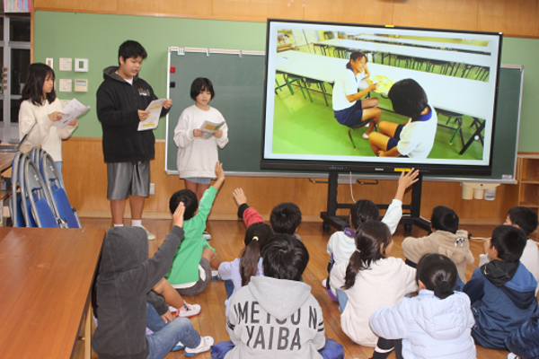 また、給食委員会が「マナー啓発動画」を作りました。 「間違ったマナー」と「お手本のマナー」を実演・比較した内容で、みんなは興味津々でした。 「あ、これはやっちゃいけないね」「こうすると気持ちよく食べられるね」と、楽しみながら学ぶことができました。