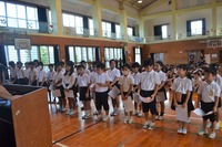 今日の全校朝会は、第2学期の学級役員(級長・副級長)の任命式でした。
