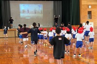4校時に、6年生が1年生と転入生に「校歌ゆうぎ」の振りを教えました。