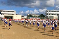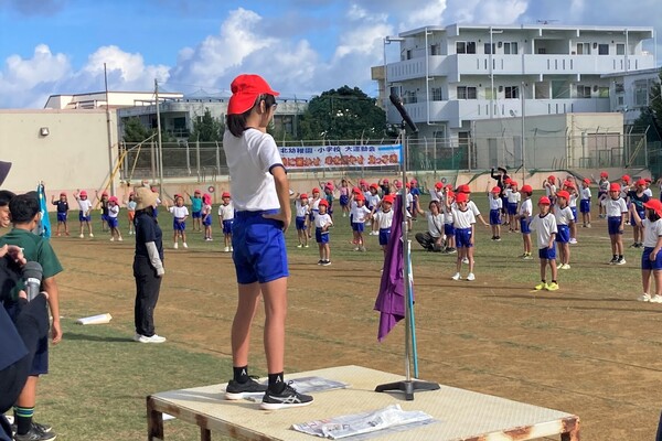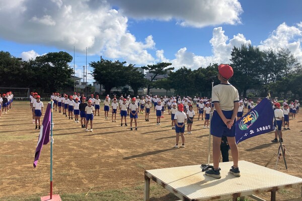入場、スローガン唱和、運動会の歌、準備運動、校歌遊技、そして閉会式の練習をしました。