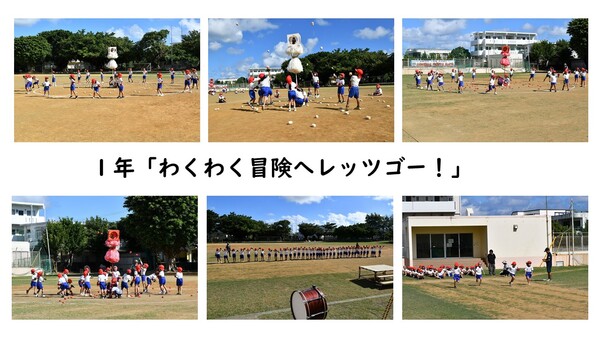1年生は、「わくわく冒険へレッツゴー!」ダンスと玉入れです。練習で接戦でした。大きな声を出して元気よく演技します。応援お願いします。