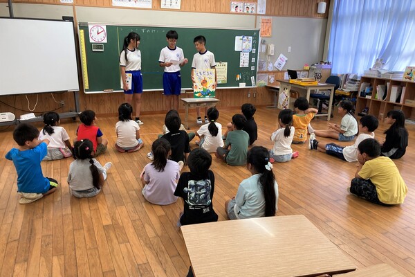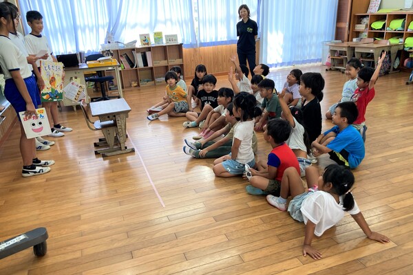 初めは、慣れずに遠くから見ていた1年生ですが、どんどん絵本のお話に引き込まれていって、とても楽しんでくれました。